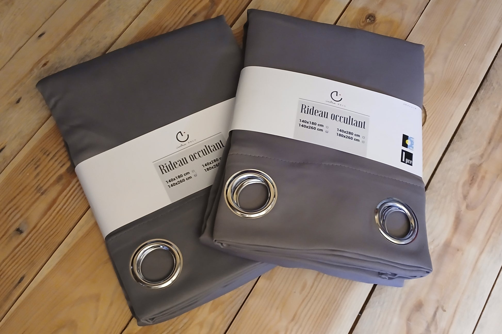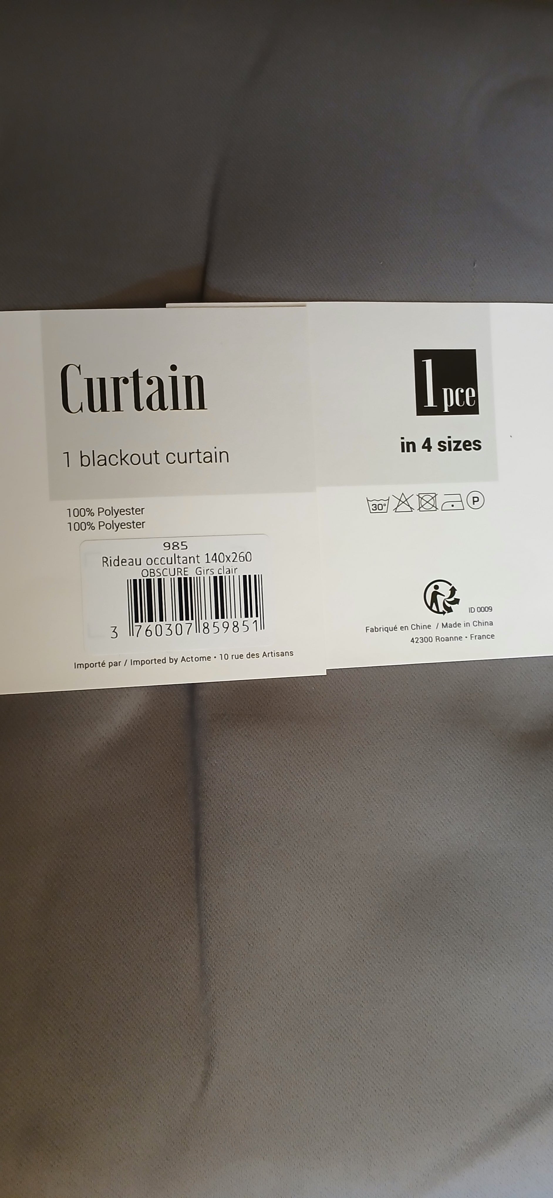 2 Rideaux occultants 140 x 260 cm en polyester 100% certifié Oeko-Tex, teinte Gris claire. Pour optimiser l'obscurité et l'isolation thermique de vos espaces.