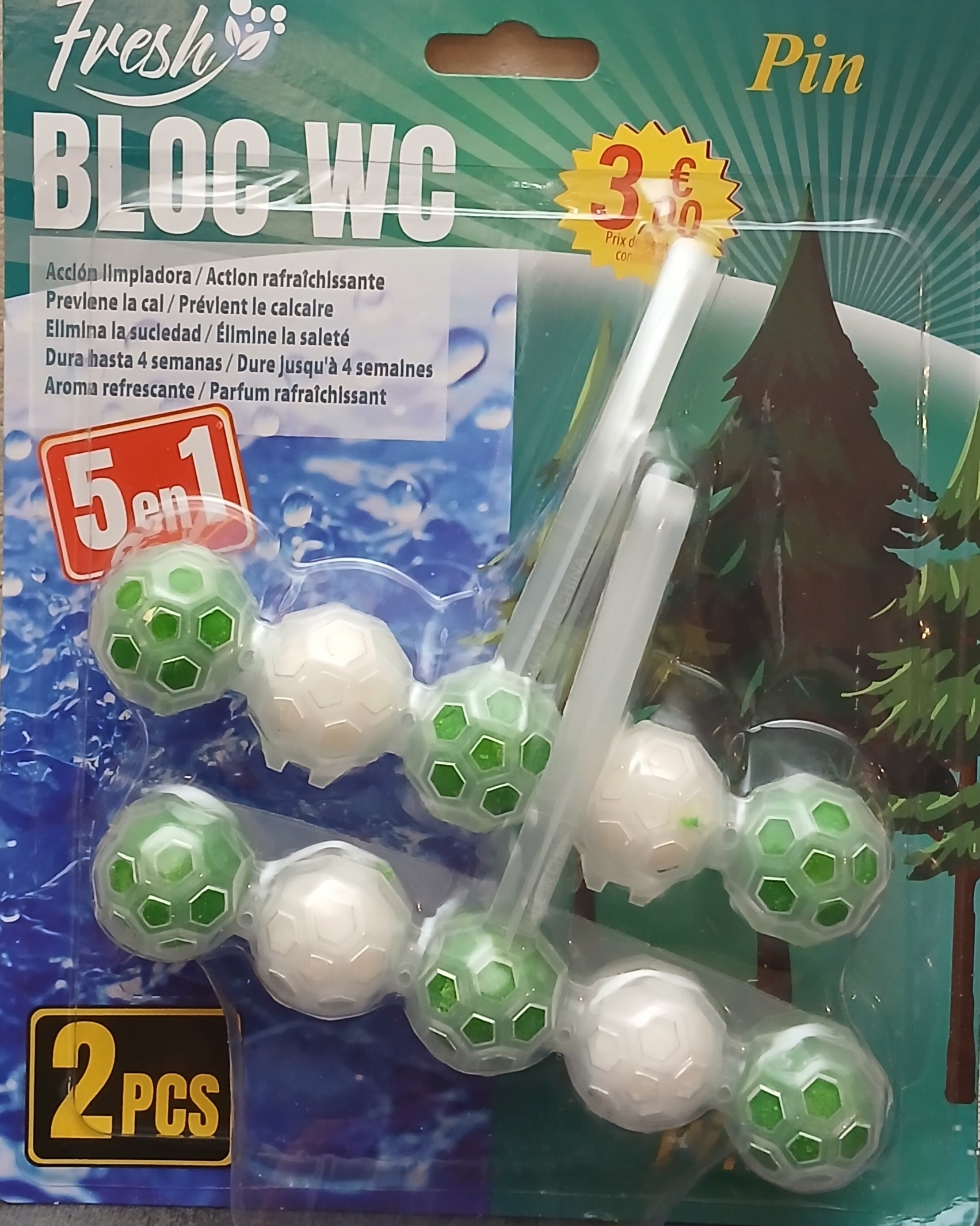 Ce bloc wc parfum pin est un produit 5 en 1 qui prévient le calcaire, élimine les saletés et laisse une odeur rafraîchissante de pin. Avec 2 blocs wc inclus, il est pratique et efficace pour garder votre toilette propre et fraîche. Éliminez les odeurs et gardez votre toilette propre avec ce bloc wc parfumé au pin.
