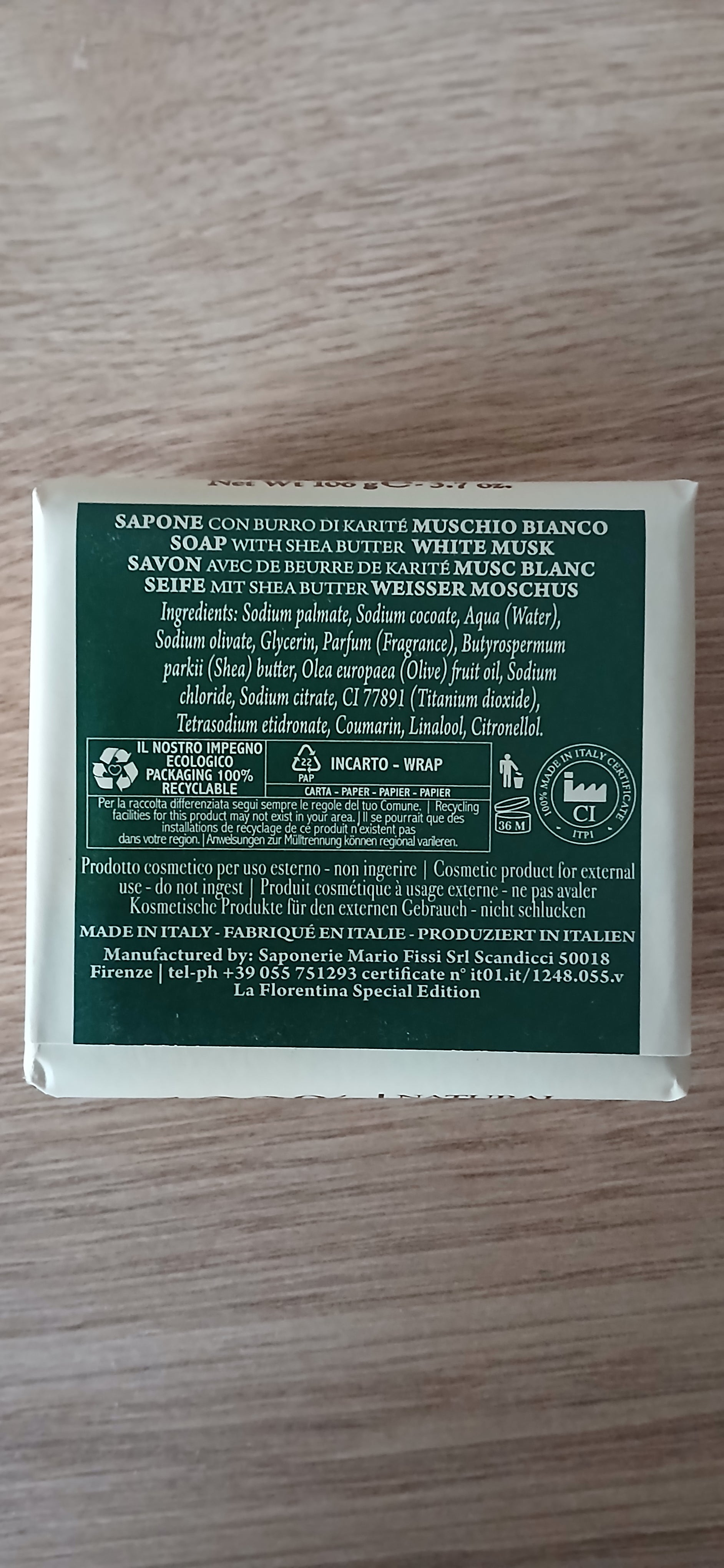 Ce savon italien de 106gr est idéal pour nettoyer en douceur et nourrir votre peau grâce à sa formule unique. Fabriqué en Italie, il offre des bénéfices antioxydants et hydratants pour une peau saine et éclatante. Profitez d'un nettoyage en profondeur avec le Savon italien.